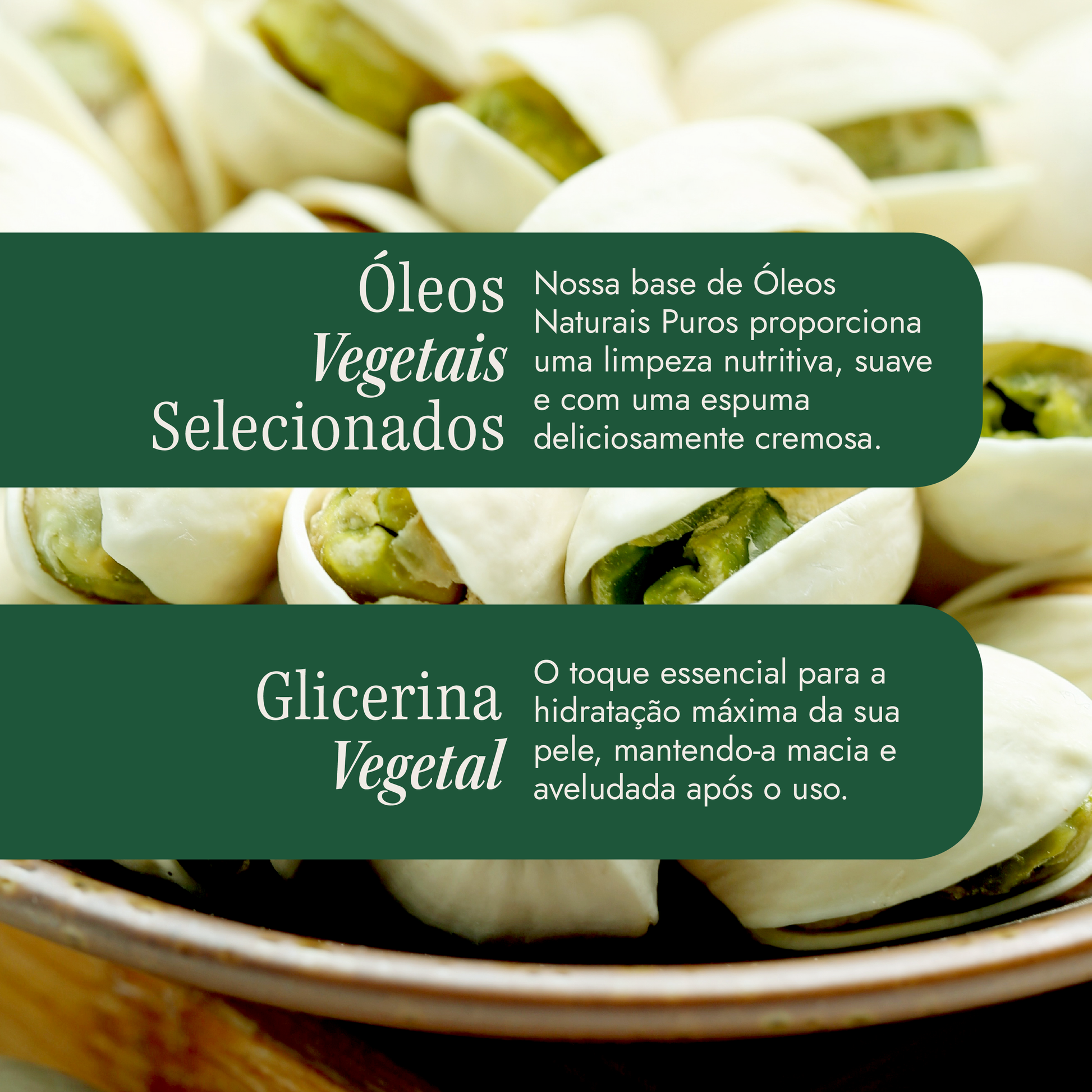- Fragrância de pistache cremoso, elegante e aconchegante.